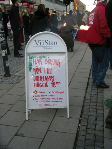 Har ej bil: 4 (50%)Kön var lång när Uppsala city tillsammans med Uppsalatidningen skulle sälja julklappar vid Celsiushuset.