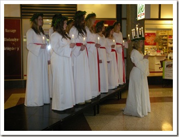 Årets lucia i Uppsala city, Amalia Hammarström, och hennes tärnor sjöng nyss i Äffärshuset Kvarnen.